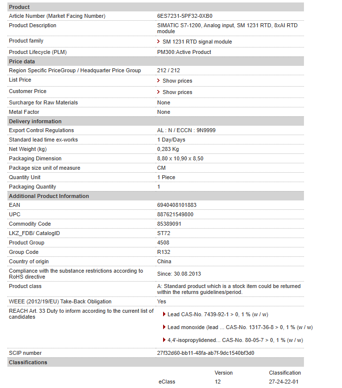 SIMATIC S7-1200, Analog input, SM 1231 RTD, 8xAI RTD module