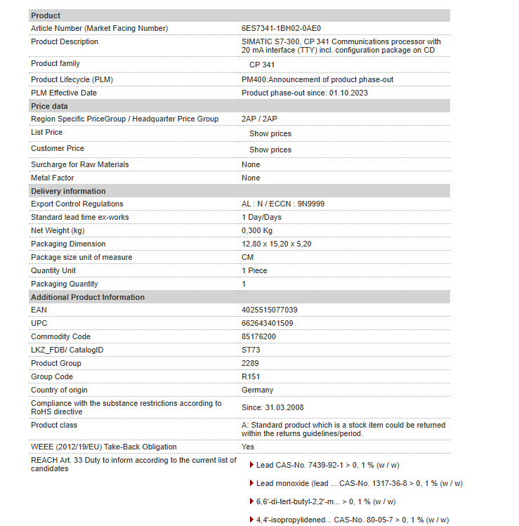SIMATIC S7-300, CP 341 Communications processor with 20 mA interface (TTY) incl. configuration package on CD