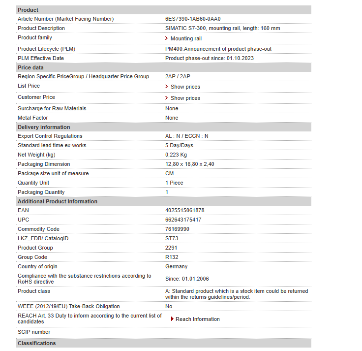 SIMATIC S7-300, mounting rail, length: 160 mm