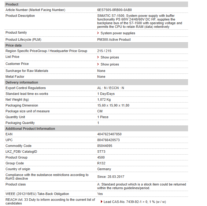 SIMATIC S7-1500, System power supply with buffer functionality PS 60W 24/48/60V DC HF, supplies the backplane bus of the S7-1500 with operating voltage and permits the CPU to retain RAM (data) rete……