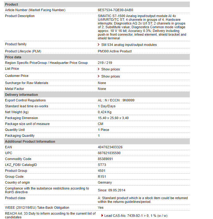 SIMATIC S7-1500 Analog input/output module AI 4x U/I/R/RTD/TC ST; 4 channels in groups of 4; Hardware interrupts; Diagnostics AQ 2x U/I ST; 2 channels in groups of 2; Substitute value; Diagnostics ……