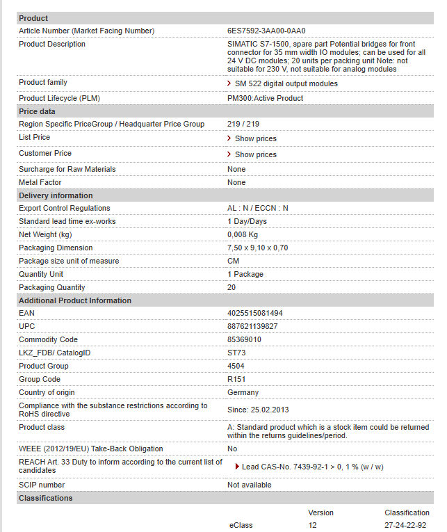 6ES7592-3AA00-0AA0