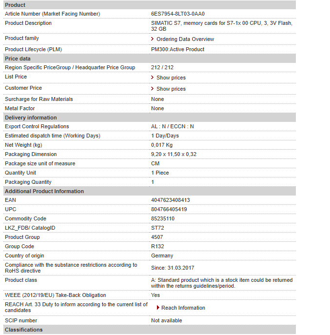SIMATIC S7, memory cards for S7-1x 00 CPU, 3, 3V Flash, 32 GB