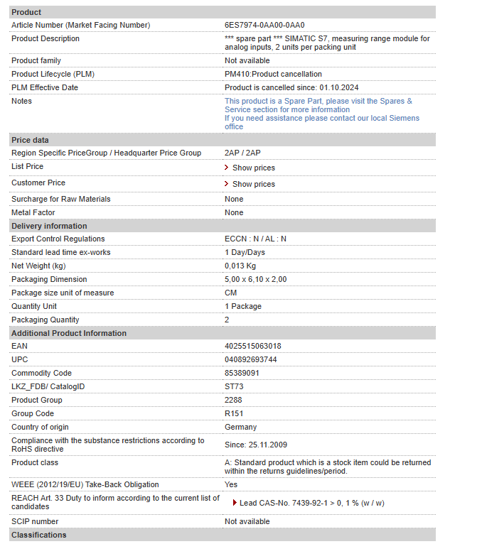 *** spare part *** SIMATIC S7, measuring range module for analog inputs, 2 units per packing unit
