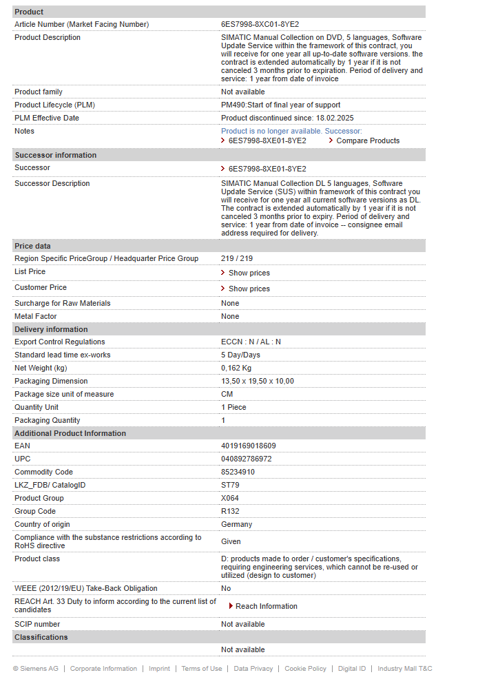 SIMATIC Manual Collection on DVD, 5 languages, Software Update Service within the framework of this contract, you will receive for one year all up-to-date software versions. the contract is extende……