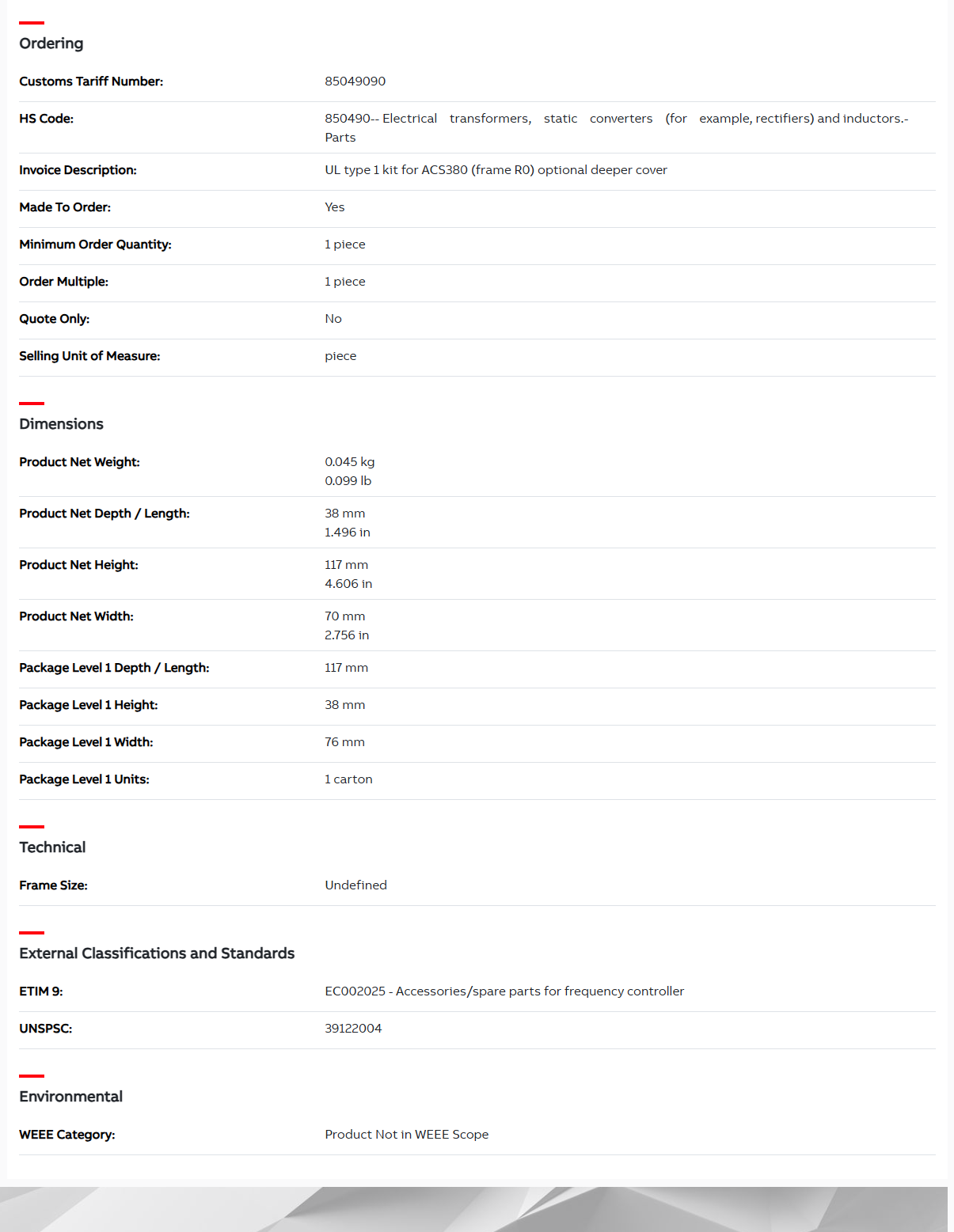ACS380 optional Deeper cover