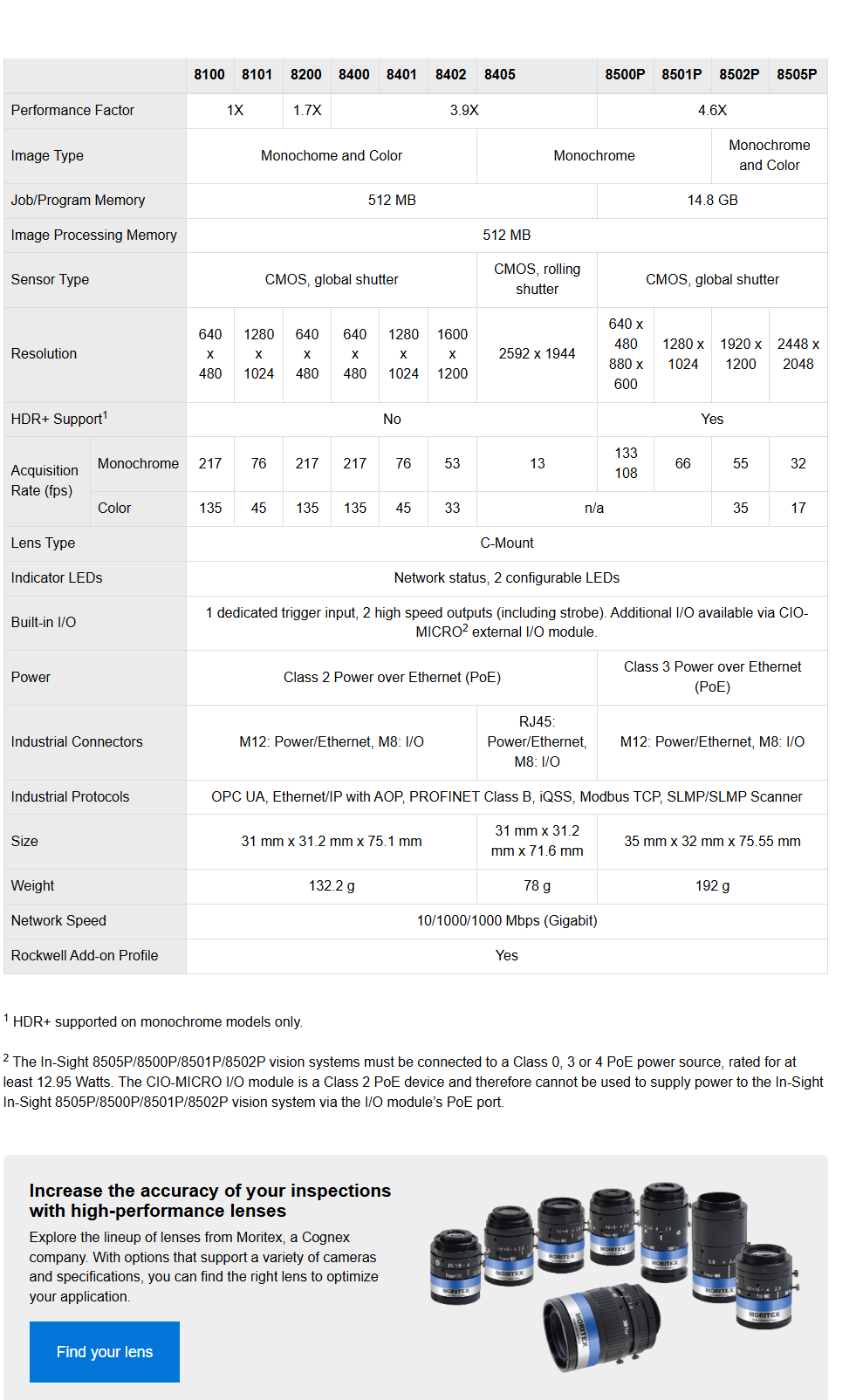 In-Sight 8000 Vision Systems Features
