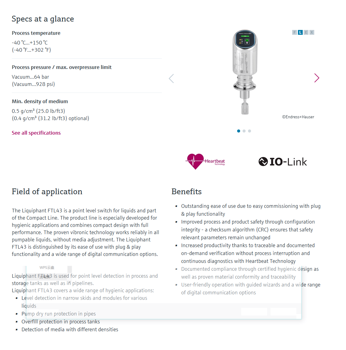 Liquiphant FTL43 – hygienic point level switch for liquids