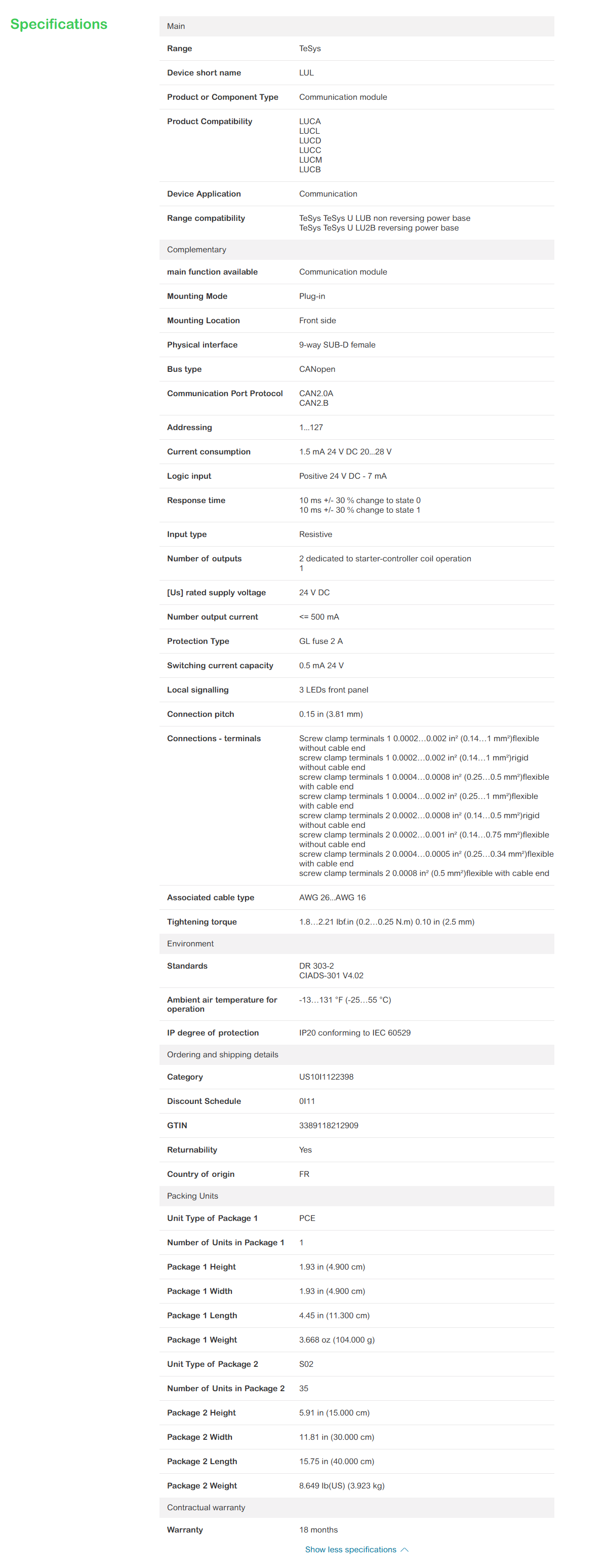 CANopen communication module, TeSys Ultra, 24VDC supply