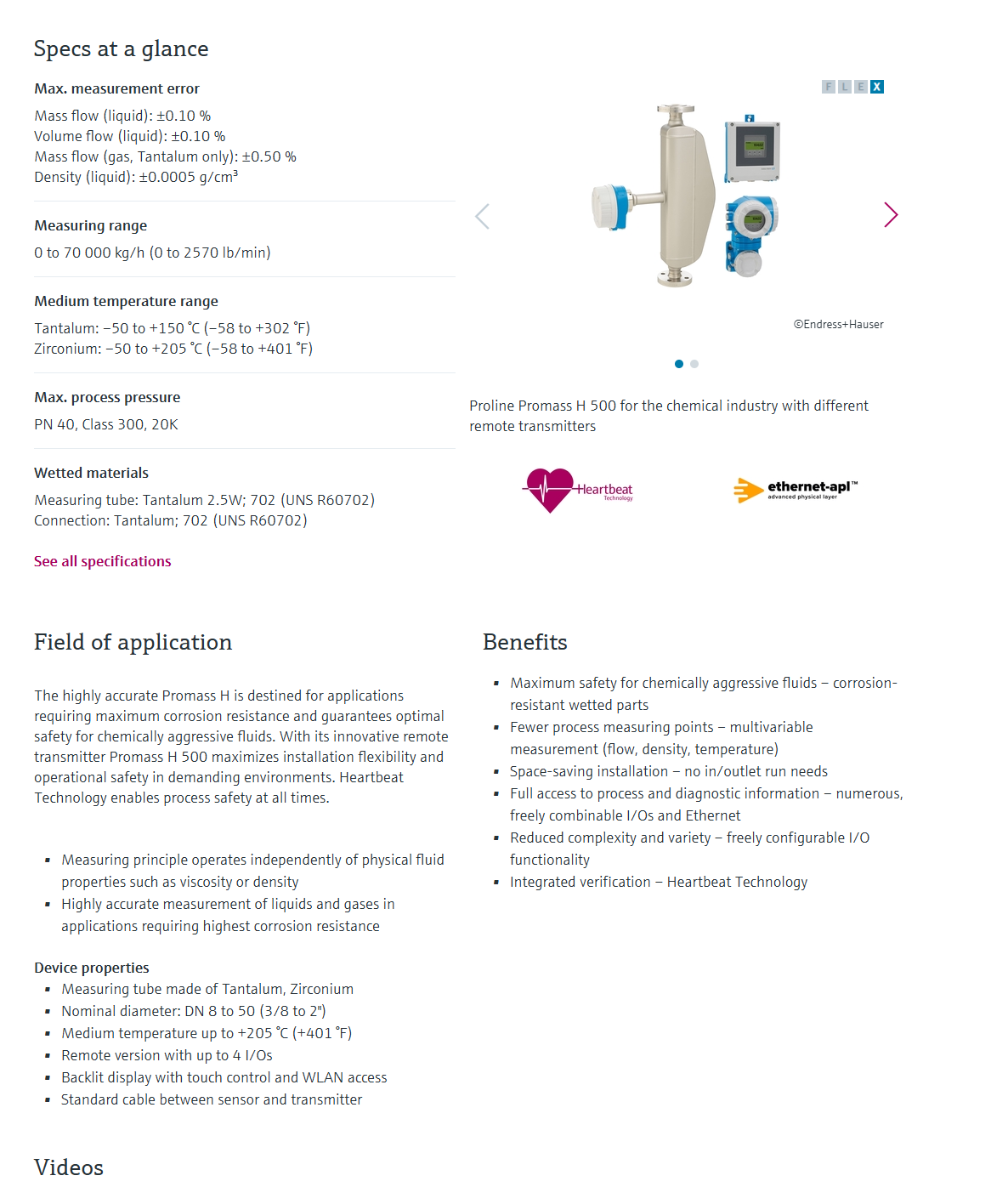 Proline Promass H 500Coriolis flow