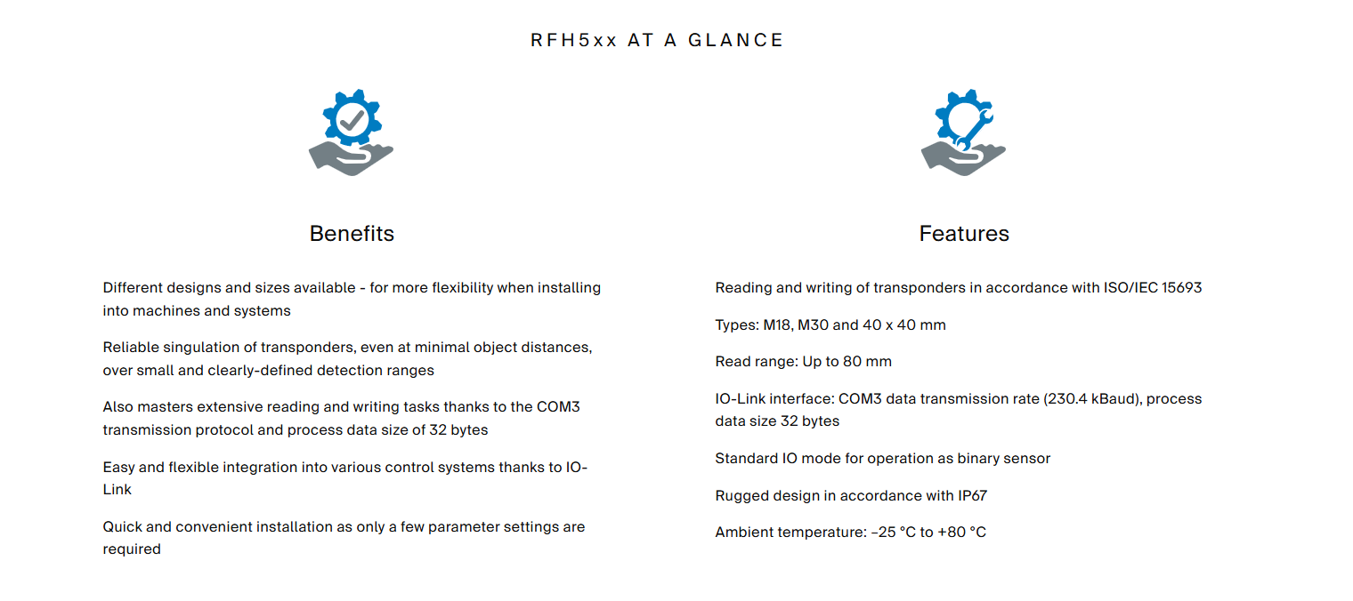HF transponder identification using a small RFID read/write device for close ranges The RFH5xx product family is the ideal solution for machines and systems in closed production and logistics pr……
