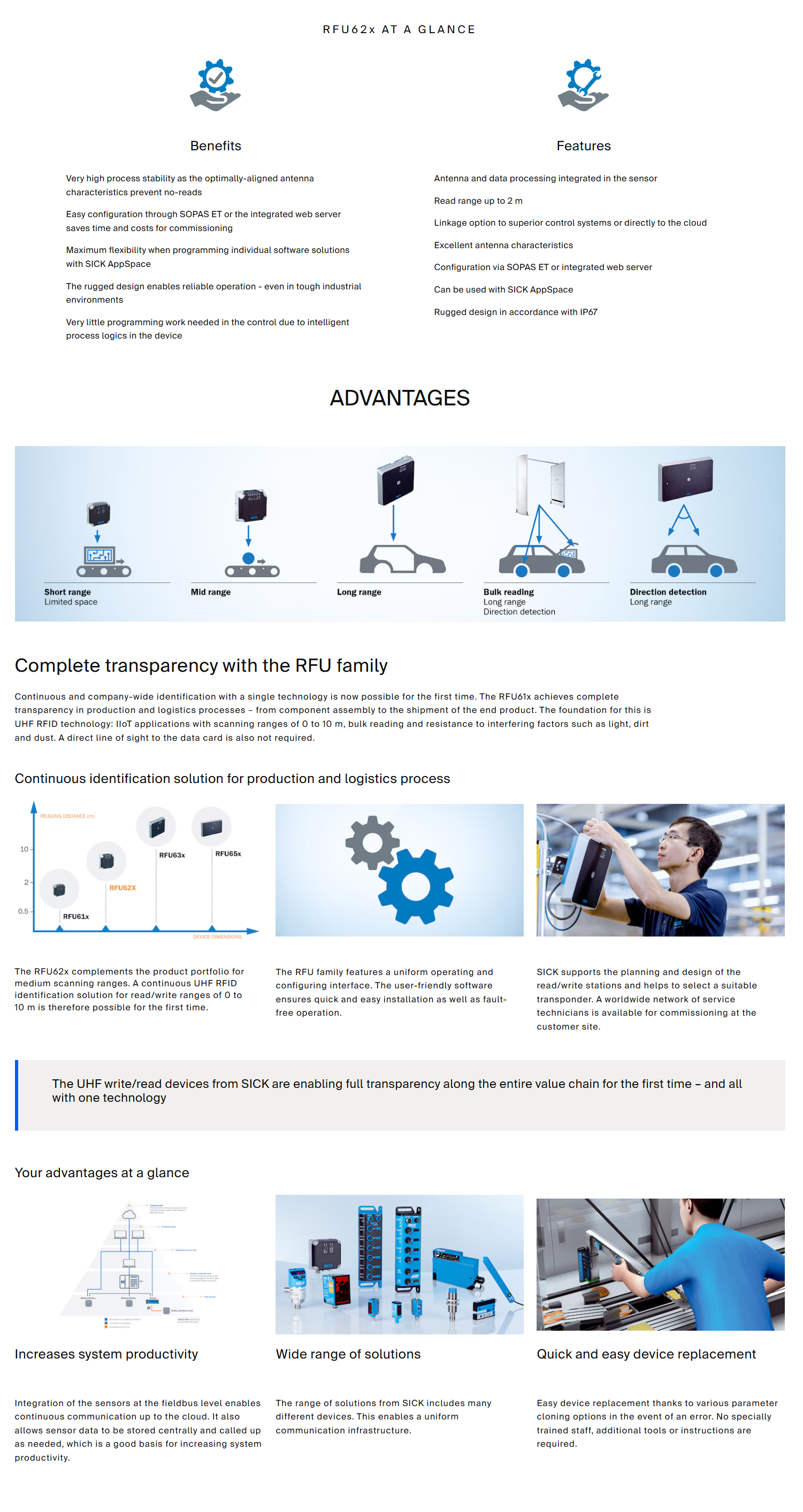 UHF transponder identification using an RFID read/write device for medium sensing ranges The RFU62x is a UHF RFID read/write device suitable for read ranges of up to 1 m. The transponder co……
