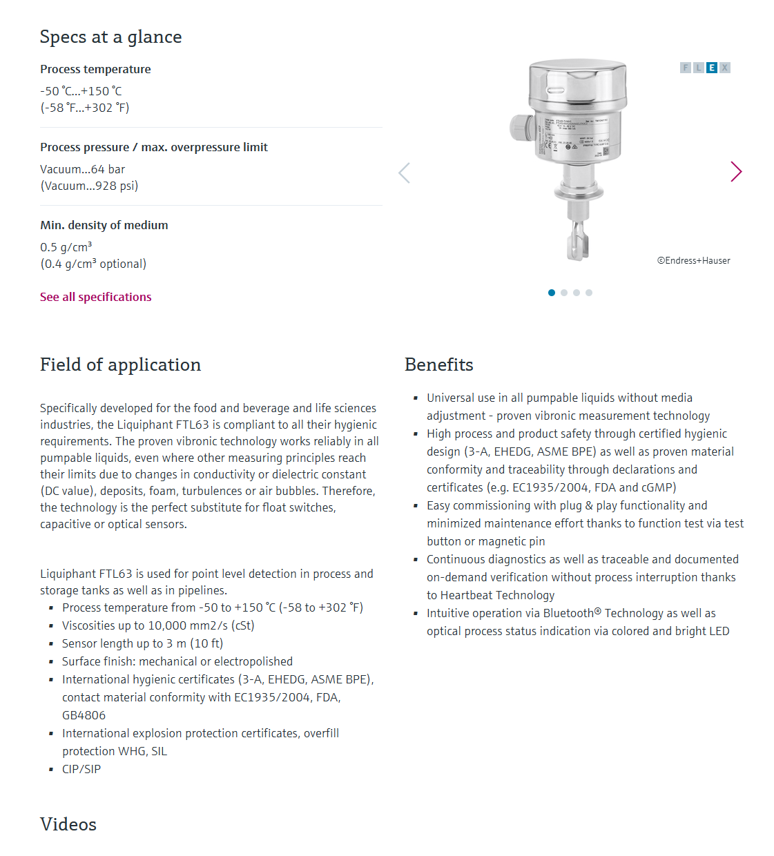 Liquiphant FTL63 – hygienic point