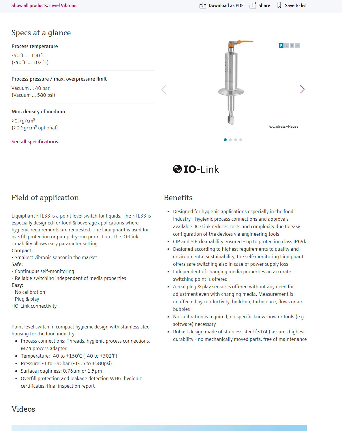 Liquiphant FTL43 – hygienic point