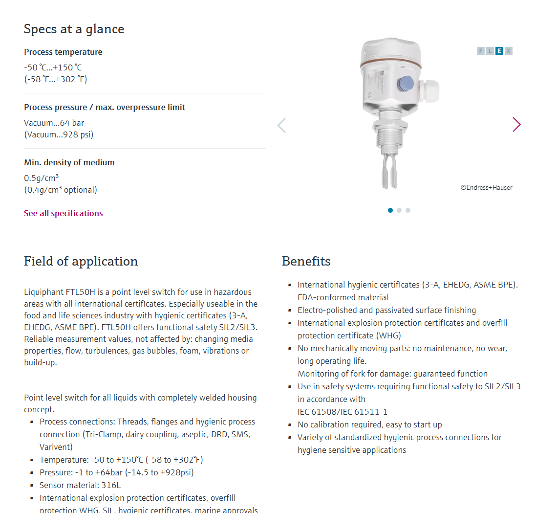 VibronicPoint level detectionLiquiphant FTL50H